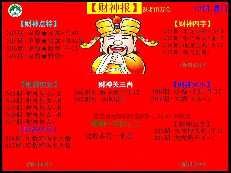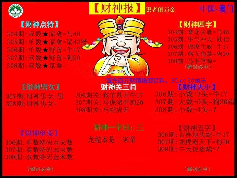 | 306期:【前后四肖】开:牛17错 前【兔龙蛇鼠】后【羊狗马猪】 |